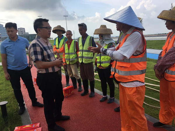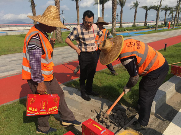 慰問組一行先后來到金山公園、金灣路,分別慰問園林綠化、市政道路管養(yǎng)、水利等一線作業(yè)員工?!?/span>你們辛苦了,感謝你們?yōu)槲拿鞒鞘懈冻龅男燎诤顾团Α?,鄒湘斌董事長對他們?yōu)榫S護(hù)城市環(huán)境衛(wèi)生作出的努力表示感謝,進(jìn)一步了解了員工的工作情況及困難,并再次叮囑他們在烈日和高溫下作業(yè)要采取有效防暑降溫和安全生產(chǎn)保障措施,以健康的身體和愉悅的心情投入到工作中。