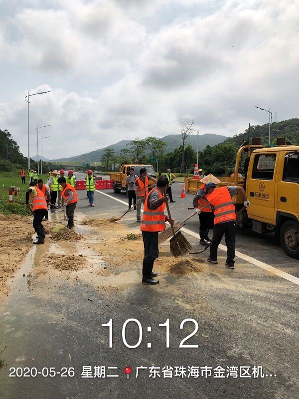 此次應(yīng)急清障演練,金灣交通公路部門組織應(yīng)急搶險(xiǎn)人員近40人,車輛10余臺,其中城運(yùn)公司投入道路管養(yǎng)工作人員25人,出動(dòng)6臺作業(yè)車輛以及一批小型設(shè)備,參與了有序清障、泥沙清掃、路面清洗和安全撤離等環(huán)節(jié)的實(shí)操演練。演練全過程前后用時(shí)1.5小時(shí),完成了整個(gè)公路清障應(yīng)急演練活動(dòng)。
