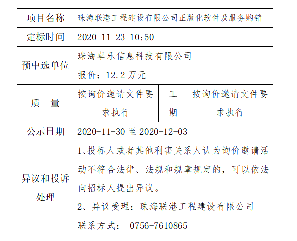 采購項(xiàng)目詢價(jià)結(jié)果公示
