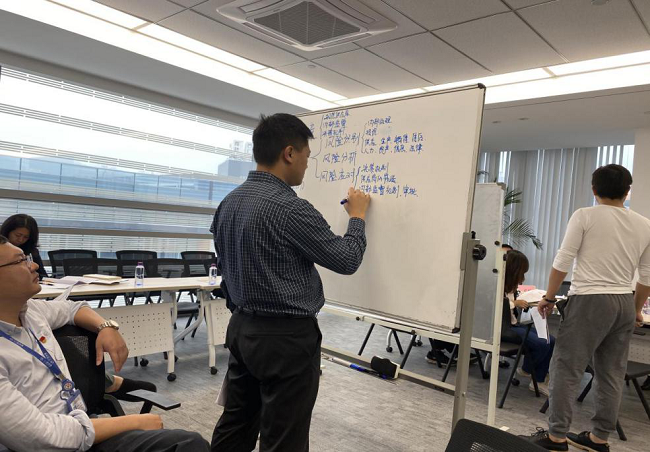 培訓(xùn)采取分組討論形式,分成四組對(duì)相關(guān)案例進(jìn)行全面復(fù)盤,并按照內(nèi)部環(huán)境、風(fēng)險(xiǎn)評(píng)估(辨識(shí)、分析)、控制活動(dòng)、信息與溝通、內(nèi)部監(jiān)督等五個(gè)方面,對(duì)案例中反映出的該公司在戰(zhàn)略、業(yè)務(wù)、資源、法務(wù)等管理中存在的重大風(fēng)險(xiǎn)、失效環(huán)節(jié)進(jìn)行全面的辨識(shí)和分析,有針對(duì)性地提出控制措施和解決方案。研討過程中,各小組推選了小組長,全體成員發(fā)揮各自專業(yè)優(yōu)勢(shì),開展頭腦風(fēng)暴,集思廣益,形成各小組的分析結(jié)論,并逐一對(duì)分析成果進(jìn)行了講解和展示。活動(dòng)現(xiàn)場(chǎng)氣氛熱烈,討論充分,各小組站在內(nèi)部控制獨(dú)特視角,指出了很多隱藏在公司管理中的“漏洞”“死角”,特別針對(duì)制約制衡機(jī)制、分權(quán)管理、監(jiān)督審核的重要意義和完善方案提出了獨(dú)到的見解。在最后的自評(píng)打分環(huán)節(jié),各小組還特別針對(duì)小組成員的參與程度、分工協(xié)作、溝通交流等情況進(jìn)行了自評(píng),為下一步加強(qiáng)跨部門、跨單位的良好溝通、互動(dòng)開了一個(gè)好頭。