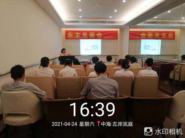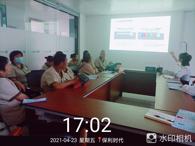 4月23日、24日下午聯(lián)港公司垃圾分類項(xiàng)目宣講員到保利時(shí)代、中海左岸嵐庭小區(qū)開展垃圾分類專題培訓(xùn),保利時(shí)代、中海左岸嵐庭物業(yè)管理層和保潔隊(duì)伍等共計(jì)50人,分成兩批參訓(xùn)。聯(lián)港公司垃圾分類項(xiàng)目宣講員受邀前往現(xiàn)場(chǎng)作《垃圾分一分金灣美十分》主題培訓(xùn)。