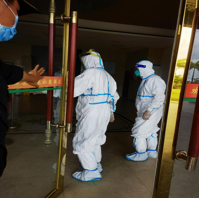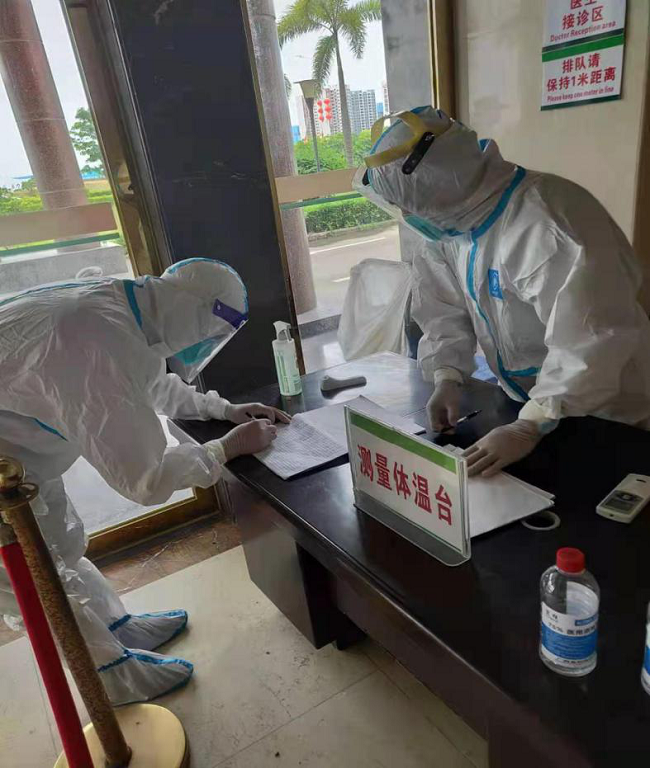 董事長詳細(xì)詢問了隔離酒店有關(guān)防疫措施、安保管理、醫(yī)療保障等情況,查閱了駐點(diǎn)工作臺賬,現(xiàn)場提出了防疫工作還需改善的事項(xiàng),要求盡快完善防疫設(shè)施、設(shè)備配套工作,部分醫(yī)學(xué)觀察區(qū)間要及時增加空調(diào),室內(nèi)外區(qū)域要加強(qiáng)消毒、消殺管理。
