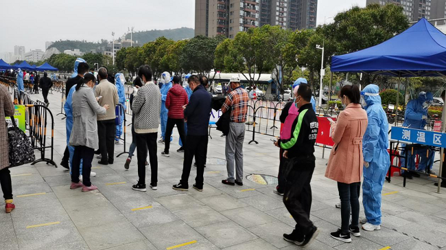 安全高效,有條不紊?,F(xiàn)場工作中,防疫抗疫宣傳、維護(hù)秩序、信息采集,及時(shí)提醒群眾保持一米安全距離,全程佩戴口罩,主動掃碼測溫,嚴(yán)格規(guī)范檢測流程,每一樣都是有條不紊地推進(jìn),連日的奮戰(zhàn),從醫(yī)務(wù)工作者、社區(qū)工作者、志愿者到群眾,都增添了更多的淡定、從容。