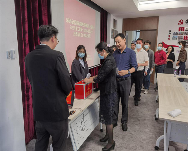 會議伊始,主持人宣讀了區(qū)總工會《關(guān)于聯(lián)港基礎(chǔ)投資有限公司工會第二屆委員會補(bǔ)選委員、工會主席及候選人推薦人選請示的批復(fù)》,與會會員按程序通過舉手表決方式,全票通過了《聯(lián)港基礎(chǔ)投資有限公司工會第二屆委員會委員及主席補(bǔ)選辦法》,第二屆委員會委員及主席候選人建議名單,選舉總監(jiān)票人、監(jiān)票人、唱票人、計(jì)票人名單,并鄭重投出了自己的選票。